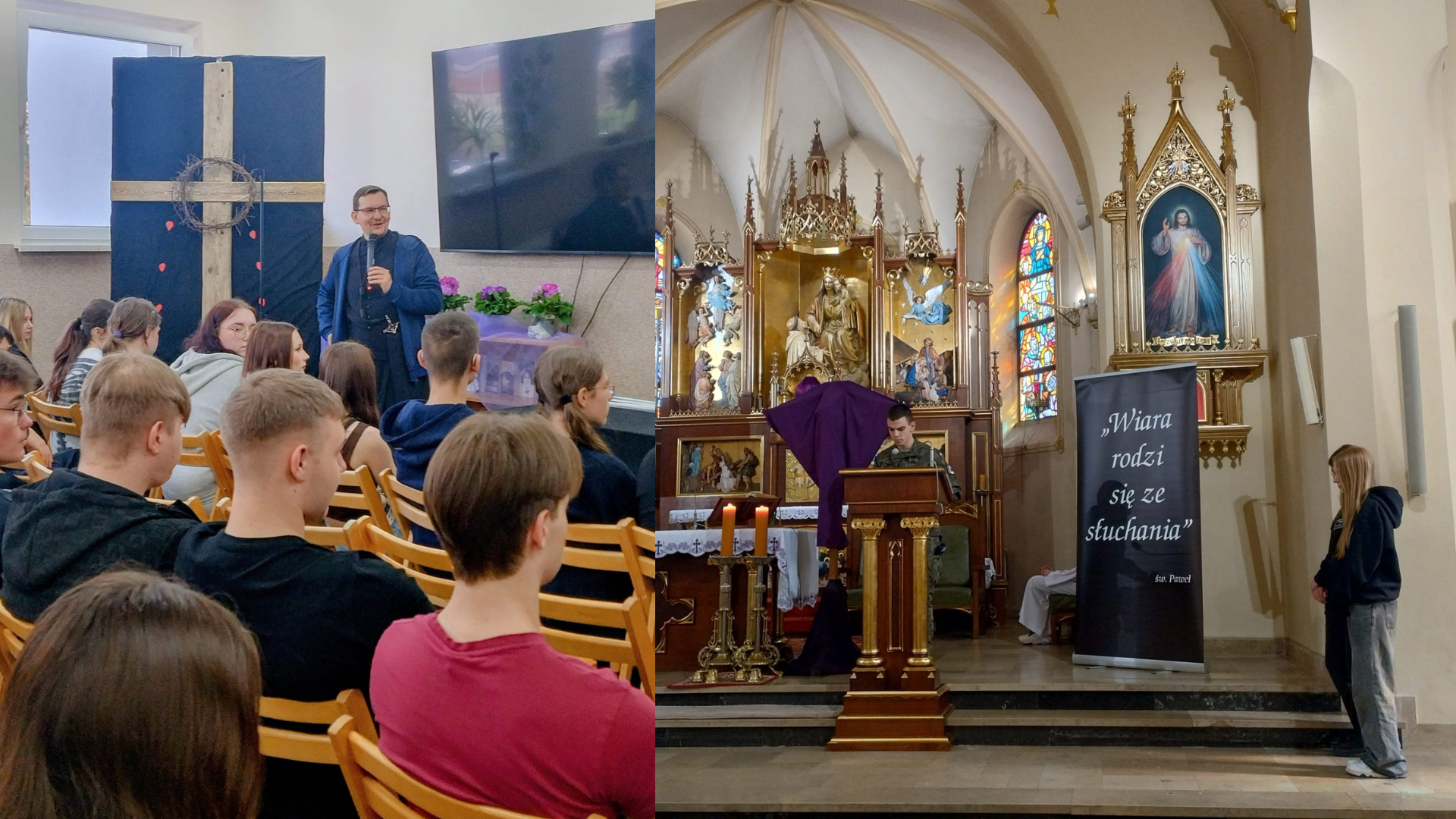 W dniach od 23 do 25 marca swoje rekolekcje wielkopostne przeżywali uczniowie Zespołu Szkół Technicznych i Usługowych w Łaziskach Górnych. Podczas spotkań w szkole młodzież miała okazję poznać członków Wspólnoty Cenacolo, którzy podzielili się swoim doświadczeniem wiary. Punktem kulminacyjnym była środowa Eucharystia - przewodniczył jej ks. rekolekcjonista Łukasz Skołud.