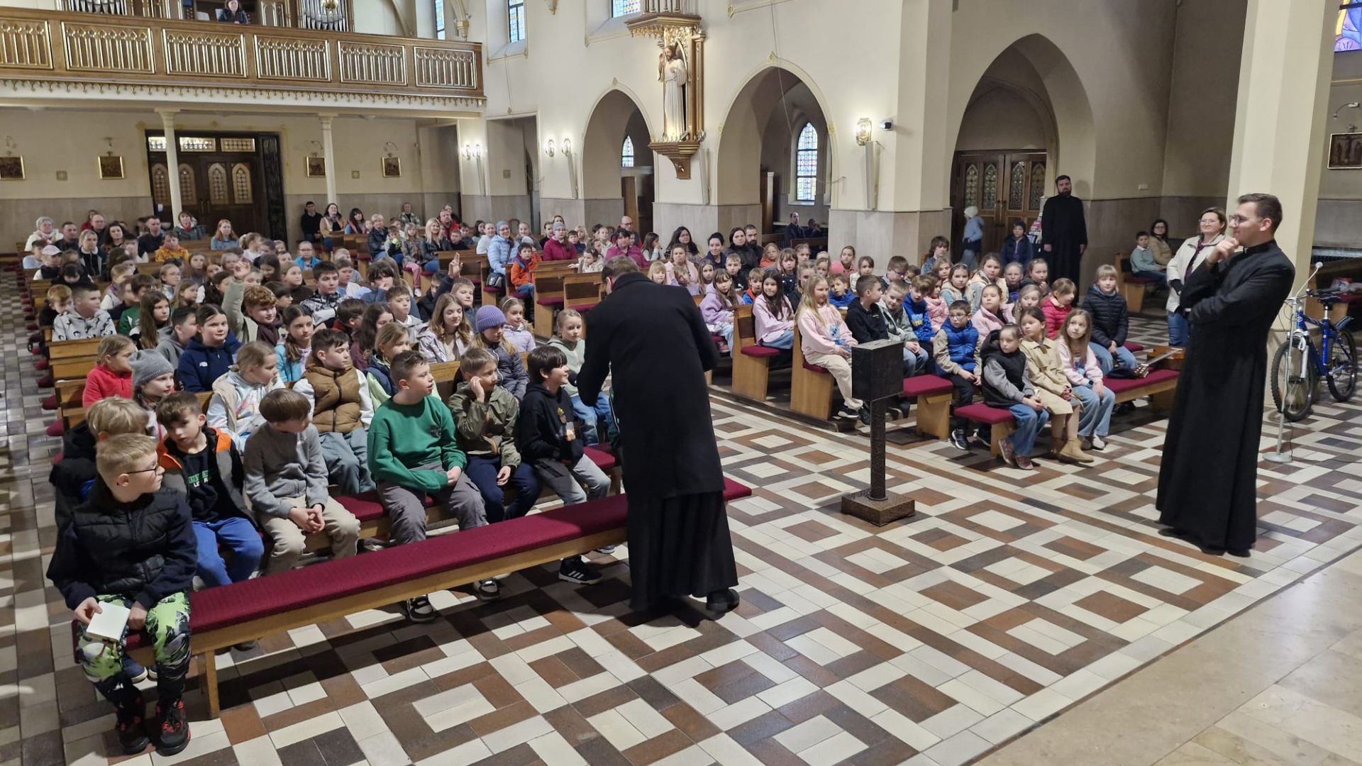 Za nami już wielkopostne rekolekcje dla uczniów szkół podstawowych. Dzieci i młodzież spotykała się w kościele w piątek i sobotę (13-14 marca). Razem z ks. Mateuszem Ochojskim, którego gościliśmy w parafii, dzieci wyruszyły "w drogę z Jezusem". Spotkania w kościele, a także wspólny czas w domu katechetycznym miał przypomnieć czego na tej drodze wiary potrzebujemy, co nas umacnia.
